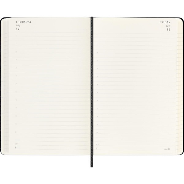Muestra cada fecha en su propia página, está disponible en una completa gama de colores, y permite registrar al detalle cada día del año.