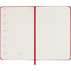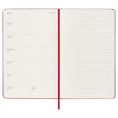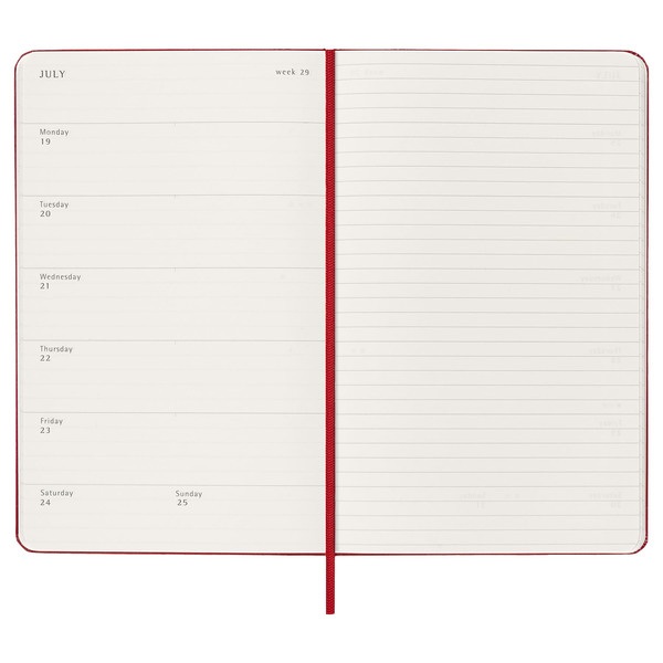 Esta agenda/diario semanal de 18 meses abarca de julio a diciembre. Muestra las citas de la semana a la izquierda, y una página pautada para plasmar notas e ideas a la derecha con toda la libertad que te brindaría un diario.