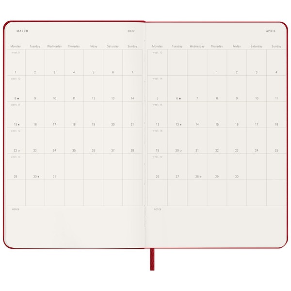 2026/2027 AGENDA 18 MESES SEMANAL ROJO ESCARLATA TAPA DURA