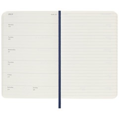 Esta agenda/diario semanal de 18 meses abarca de julio a diciembre. Muestra las citas de la semana a la izquierda, y una página pautada para plasmar notas e ideas a la derecha con toda la libertad que te brindaría un diario.