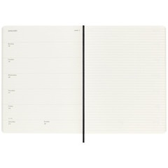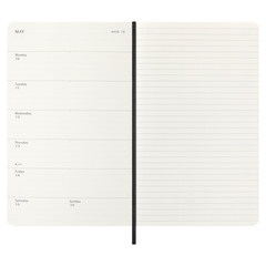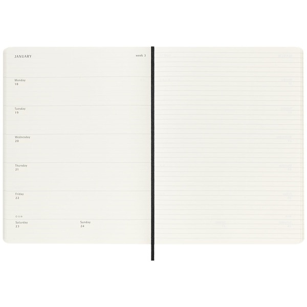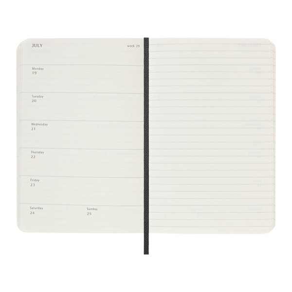 Esta agenda/diario semanal de 18 meses abarca de julio a diciembre. Muestra las citas de la semana a la izquierda, y una página pautada para plasmar notas e ideas a la derecha con toda la libertad que te brindaría un diario.