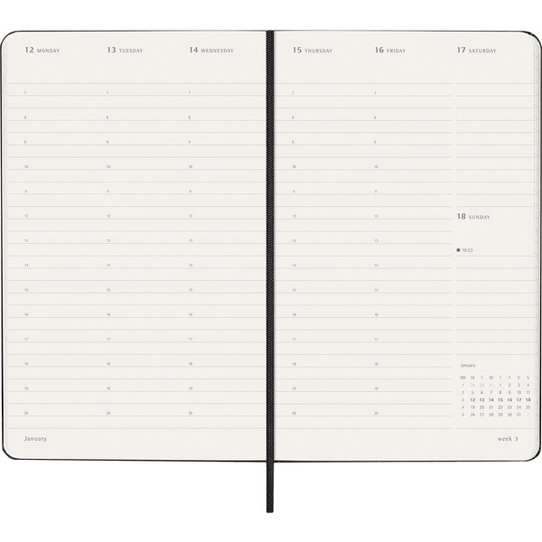 Esta popular agenda, cuyo formato muestra cada día en una página, está disponible en una completa gama de colores para captar los detalles de cada día del año.