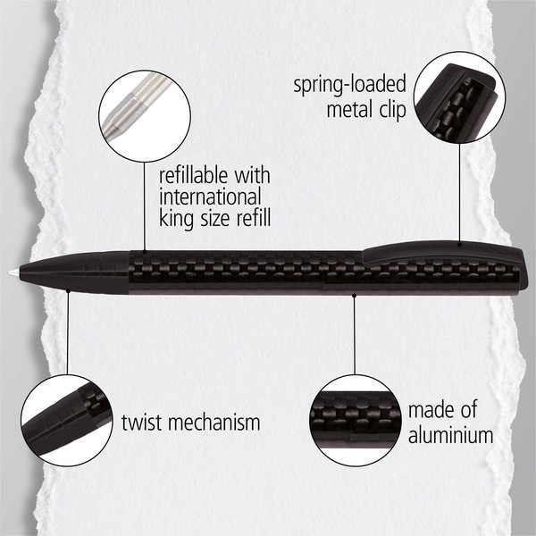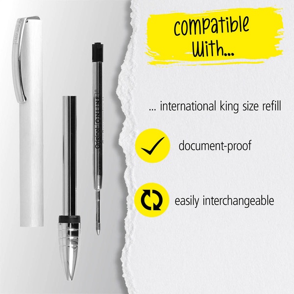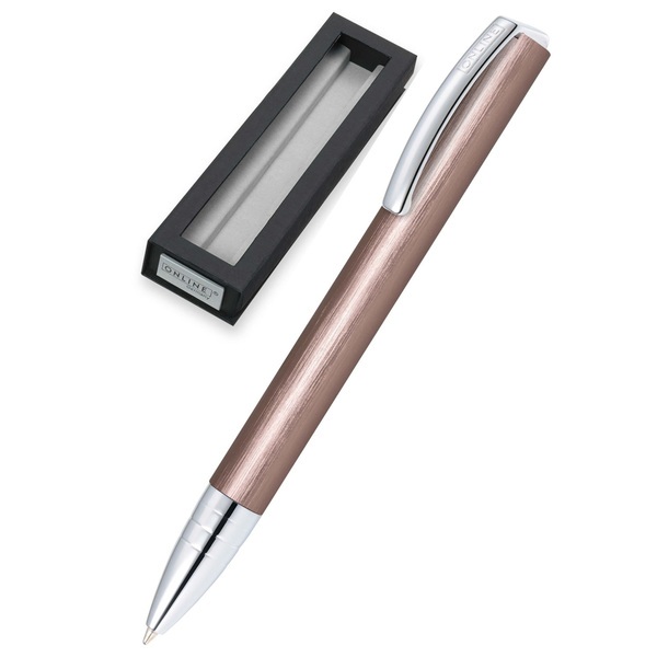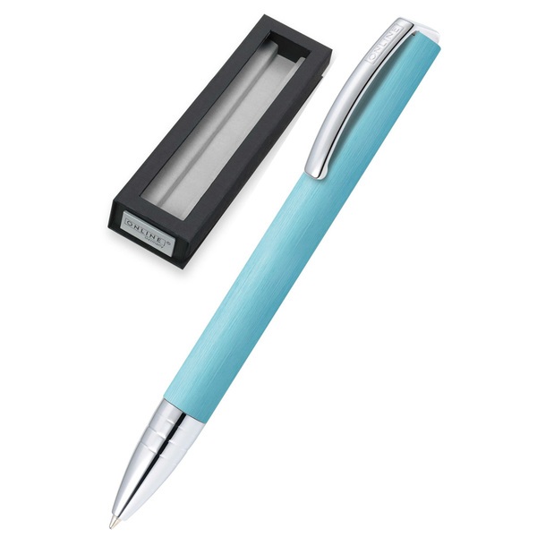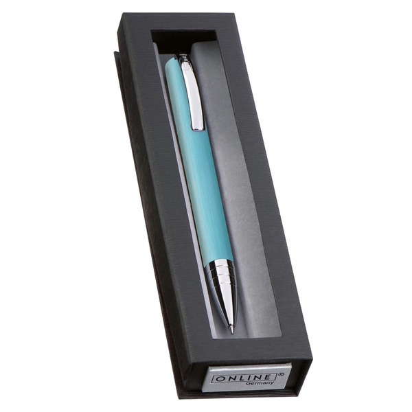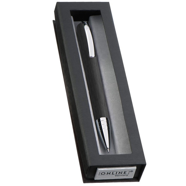 El bolígrafo de diseño Vision de ONLINE de aluminio cepillado con un diseño moderno convence por su extraordinario carisma. Equipado con un clip de metal de diseño elegante, un mecanismo giratorio de alta calidad y una mina de metal grande en color negro, este bolígrafo garantiza puro placer de escribir, para los más exigentes. Este bolígrafo demuestra competencia en calidad, diseño y tendencia, empaquetado en Slimsy Box.