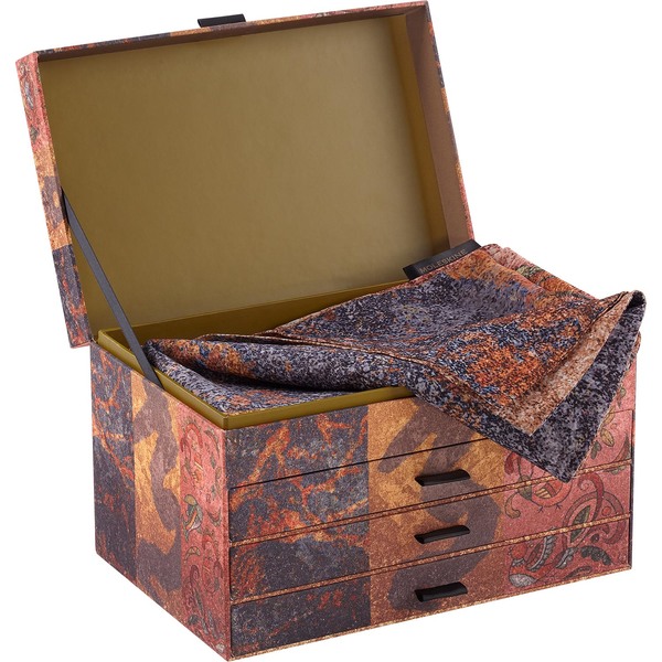 Tres artistas, tres países. Explora una colección de cuadernos que muestra ilustraciones de la creadora de manga japonesa Momoko Sakura, el artista chino Zeng Fanzhi y el diseñador tipográfico surcoreano Ahn Sang Soo. Esta caja de coleccionista une a tres creativos contemporáneos de tres países diferentes en una celebración de las tradiciones orientales. Cada aclamado artista representa sus tradiciones a través de su propia forma particular de arte expresivo, lo que da como resultado tres cuadernos de edición limitada muy distintivos. La bonito caja de regalo, una obra de arte en sí misma, combina los diferentes estilos en su exterior cubierto de tela, mientras que en su interior esperan a ser descubiertos los tres cuadernos. Ábrela para descubrir un cuaderno Sakura con gráficos del artista de manga japonés Momoko Sakura, autor del popular manga Chibi Maruko-Chan. Este cuaderno incluye un juego de adhesivos temáticos y una tarjeta de felicitación, ambos con diseños originales de Momoko Sakura. La caja también contiene dos ediciones limitadas del Año del Dragón. Zeng Fanzhi de China rinde homenaje al Año Nuevo chino 2024 con una obra de arte dedicada en la portada del primer cuaderno. Zeng, uno de los artistas más eminentes que trabajan en la actualidad, es reconocido en todo el mundo por sus habilidades técnicas y su experiencia a la hora de evocar emociones a partir de su tema. El segundo cuaderno del Año Nuevo Lunar es del surcoreano Ahn Sang Soo. Ahn Sang Soo, diseñador visual y tipógrafo, recibió el Premio Gutenberg de Leipzig, Alemania, en 2007. Ha participado en exposiciones individuales y colectivas en varios países y se le pidió participar en la Bienal de Tokio de 2022. Ambos cuadernos del Año del Dragón incluyen sobres de la suerte. Este especial juego de regalo se completa con un suave fular que combina hábilmente las obras de arte de los tres artistas.