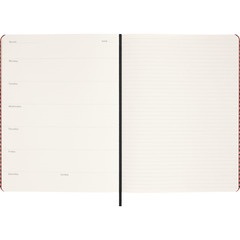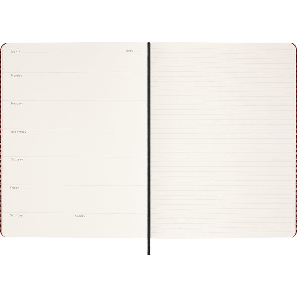 • diseño de cuaderno semanal sin fecha con los días de la semana frente a una página para notas