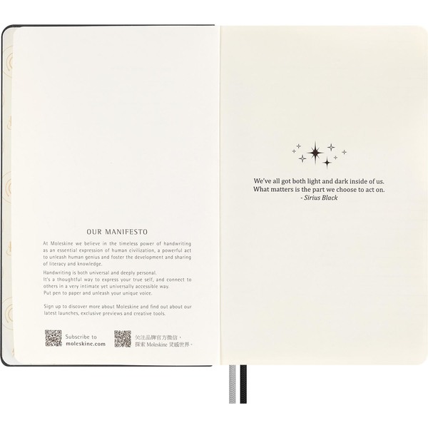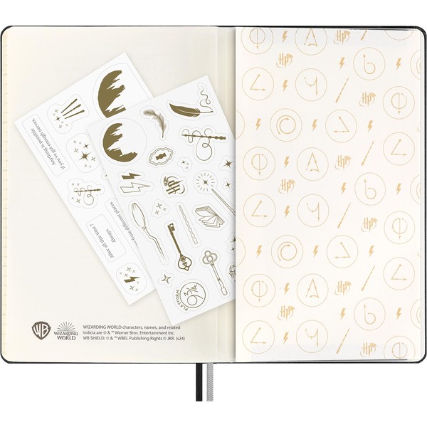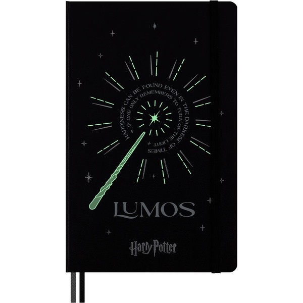 Lumos: el más sencillo de los hechizos, pero que garantiza luz en tiempos de oscuridad. Ilumina tu creatividad en las páginas color marfil de este cuaderno a rayas en forma de ideas, notas, proyectos y planes. Esta edición limitada de Harry Potter tiene una cubierta que brilla en la oscuridad, dos cintas marcapáginas y una conmovedora cita de la historia en el interior. Las ilustraciones del libro animado decoran la esquina inferior derecha de varias páginas, mientras que las guardas te dan la oportunidad de practicar los movimientos de varita con tu bolígrafo favorito. Cada diario y cuaderno de esta colección incluye un hechizo que evoca un momento emblemático de la historia. Desde los tímidos comienzos con Wingardium Leviosa hasta Protego Maxima y el épico capítulo final. En el mundo de los magos, un hechizo es una forma de expresión que desata una magia poderosa, pero para los fans de Harry Potter cada hechizo familiar desata recuerdos, evoca emociones y proporciona inspiración. La verdadera magia, por supuesto, sucede cada vez que te expresas con lápiz y papel. Estos cuadernos y agendas son el recordatorio diario de que anotar las ideas a mano es el primer paso para hacerlas realidad. © WBEI (s24)
