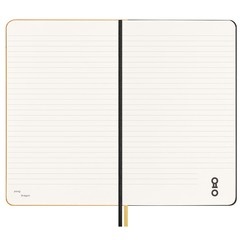 • esquinas redondeadas, cierre elástico y 2 cintas marcapáginas