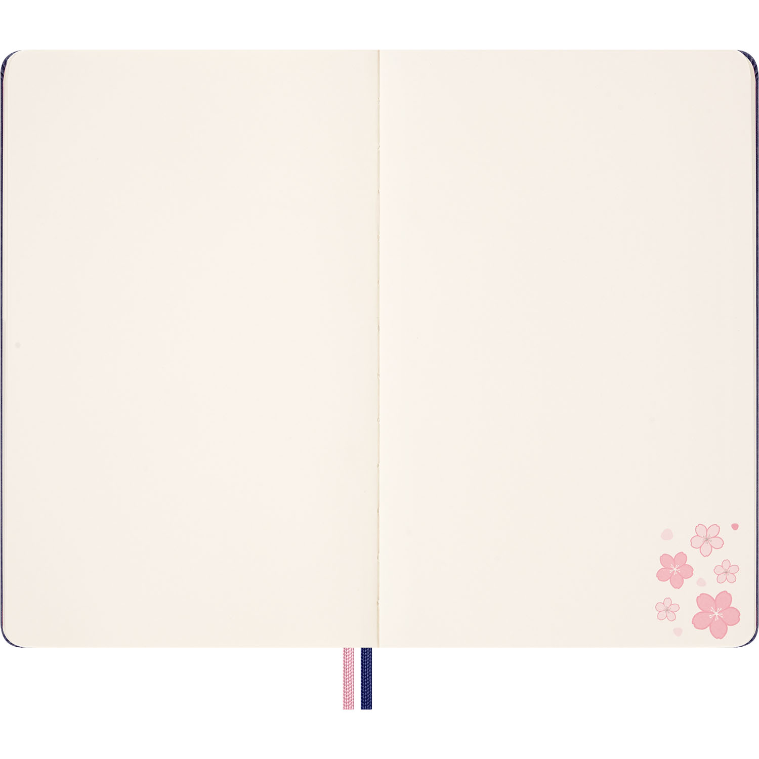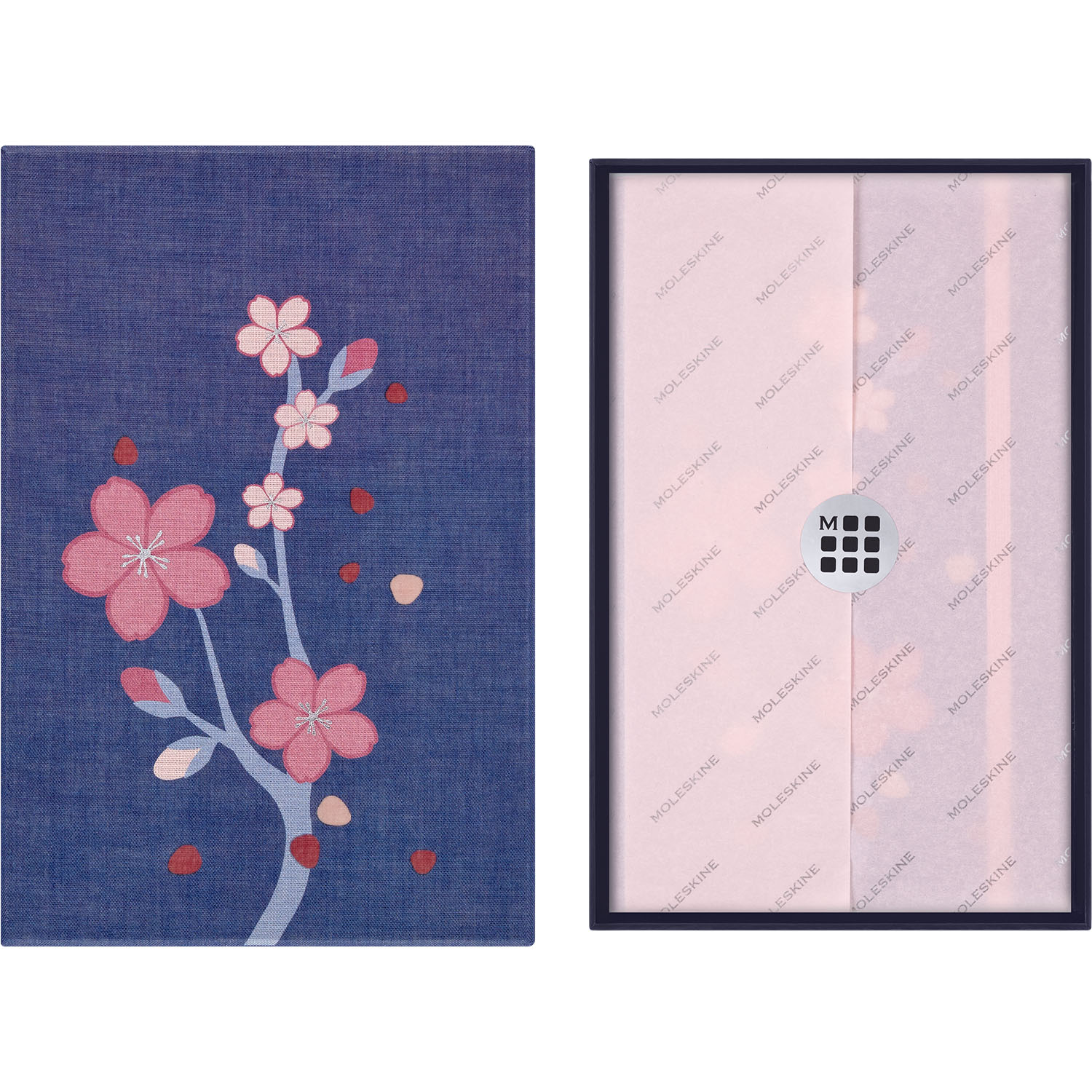 Plasma tus ideas en cada página mientras disfrutas de la belleza exquisita, pero efímera, de la flor de cerezo japonés. Celebrada en toda la cultura, la literatura y el arte japoneses, la Sakura simboliza el renacimiento, así como la naturaleza frágil y transitoria de todas las cosas. Este cuaderno Moleskine te ofrece espacio para transformar las ideas fugaces y la inspiración en proyectos, planes e historias duraderas. Delicadas flores de cerezo florecen en la tapa dura de tela de este cuaderno Sakura grande. Tiene páginas lisas de 100 g/m² para tus pensamientos manuscritos, así como un bolsillo extensible para notas sueltas y dos cintas marcapáginas. Se presenta en una bonita caja de regalo reutilizable con temática Sakura.