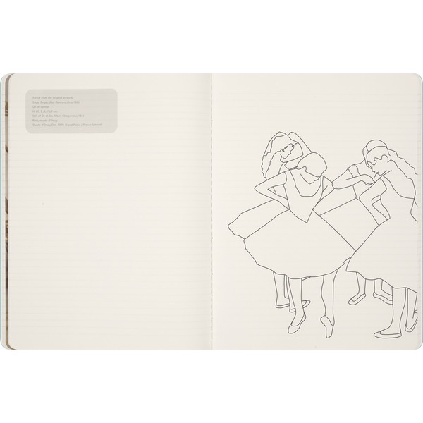 El arte impresionista es tan famoso y familiar que es fácil perder de vista lo verdaderamente revolucionarios que fueron los impresionistas. Estos artistas rompieron sin miedo con el realismo descriptivo de su época, utilizando instintivamente pinceladas sueltas para transmitir sentimientos e impresiones.  Esta colección se inspira en su estilo expresivo y rompedor. Olas de color fluyen por cada cubierta para evocar la esencia de cuadros muy queridos: una impresión de los impresionistas.   Este cuaderno es un espacio para almacenar tus propias impresiones y transformarlas en proyectos e ideas. Su cubierta representa la impresión de la obra "Bal du moulin de la Galette" de Auguste Renoir Inspírate en la libertad de expresión de los artistas y aborda cada página sin miedo; no se trata de componer la perfección sobre el papel, sino de plasmar un sentimiento. Esta es la alegría de la pluma y el papel: pensamientos manuscritos espontáneos que se unen para formar una bella impresión de un momento de tu vida.