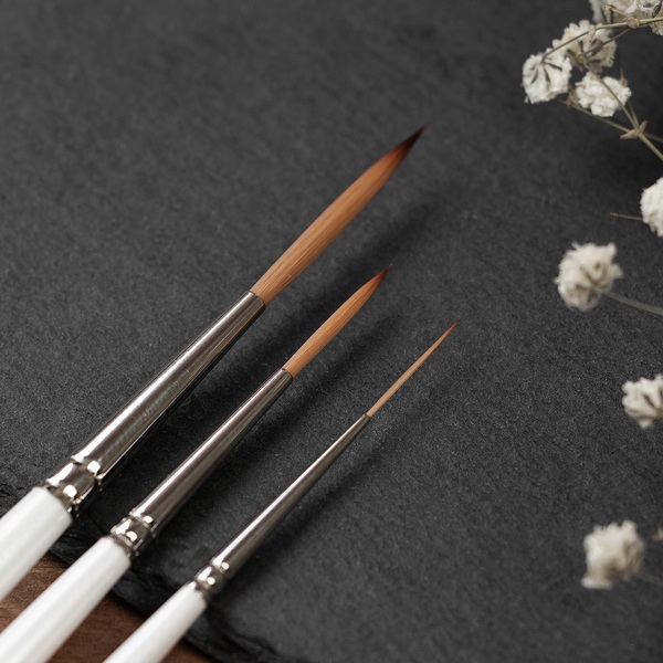 Nº 3 Para líneas extremadamente largas y muy uniformes. Alta capacidad de retención de pintura y la liberación uniforme del color. Punta perfectamente formada. El pincel Memory Point tiene una punta de forma perfecta, lo que permite pintar los detalles más pequeños con cualquier tamaño de pincel y trabajar con extrema precisión. Excelente elasticidad y capacidad para mantener la forma (memoria). Las fibras utilizadas ofrecen una excelente elasticidad. Como resultado, la punta vuelve a su forma original incluso después de un uso repetido. Esto hace que el pincel Memory Point sea especialmente duradero. Esta característica también permite al usuario dibujar líneas más gruesas y delgadas con el mismo tamaño de pincel dependiendo de la cantidad de presión que se aplica a la parte superior durante el uso. Alta capacidad de absorción y almacenamiento. Indicado para trabajos a gran escala gracias a su excelente capacidad de almacenamiento. El color puede ser absorbido y liberado de manera óptima. Gracias a ello, se pueden crear superficies uniformes y degradados de color de forma rápida y sencilla.