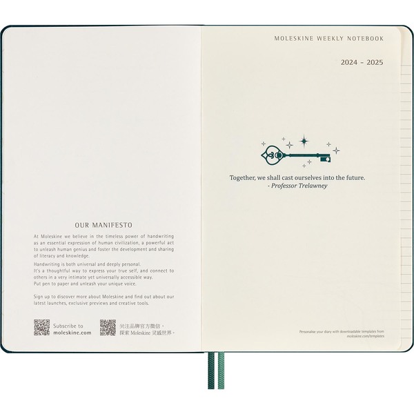 Desbloquea la magia cada día. Desbloquea la magia cada día durante el próximo año y medio con esta agenda de 18 meses. Esta edición limitada tiene una cubierta que brilla en la oscuridad y una cita memorable de la historia en el interior. Hojea las páginas para descubrir algunas fechas importantes del mundo de los magos y coge tu bolígrafo favorito para practicar los movimientos de varita con las guardas temáticas. Fechada de julio de 2024 a diciembre de 2025, esta agenda de Harry Potter tiene un diseño de cuaderno semanal que combina la planificación y la toma de notas: cada página a doble cara muestra los días de la semana horizontalmente a la izquierda, frente a una página a rayas para notas, tareas y pensamientos a la derecha. La sección inicial incluye un calendario y páginas estructuradas para la planificación y organización de viajes. Cada diario y cuaderno de esta colección incluye un hechizo que evoca un momento emblemático de la historia. Desde los tímidos comienzos con Wingardium Leviosa hasta Protego Maxima y el épico capítulo final. En el mundo de los magos, un hechizo es una forma de expresión que desata una magia poderosa, pero para los fans de Harry Potter cada hechizo familiar desata recuerdos, evoca emociones y proporciona inspiración. La verdadera magia, por supuesto, sucede cada vez que te expresas con lápiz y papel. Esta agenda es el recordatorio diario de que anotar los planes a mano es el primer paso para hacerlos realidad. © WBEI (s24)
