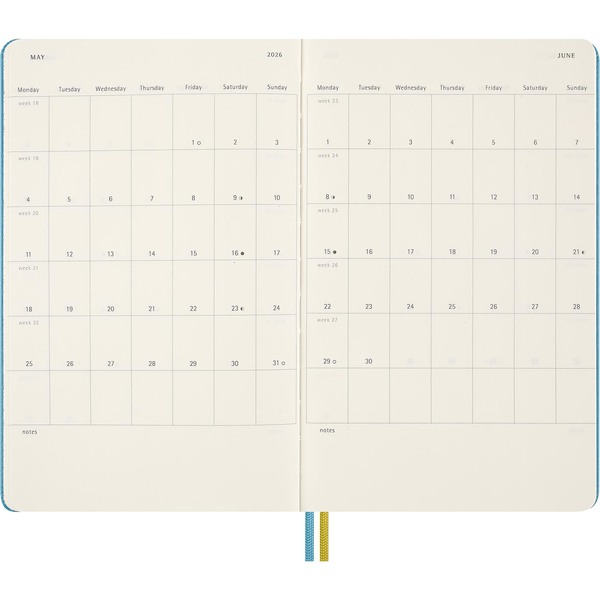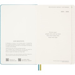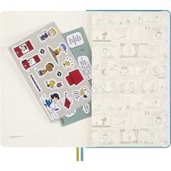 "Planifica y anota tus aventuras diarias en esta Agenda de 18 meses Peanuts x Moleskine, un homenaje a las verdades eternas y a la magia de la escritura manuscrita. Fechada desde julio de 2025 hasta finales de diciembre de 2026, esta agenda semanal muestra las queridas ilustraciones de Peanuts y una cita que celebra la alegría de escribir y tomar notas. Combinando creatividad y funcionalidad, incluye pegatinas con la temática de Peanuts, un marcapáginas de papel y guardas a medida. La tapa dura y resistente, el cierre elástico y las dos cintas marcapáginas mantienen tus planes manuscritos protegidos y ordenados. Elaborado con esmero, su papel libre de ácido (70 g/m²) de tono marfil se abre completamente a 180° para escribir sin esfuerzo. Un bolsillo extensible en la parte trasera y el mensaje ""En caso de pérdida"" contribuyen a su atractivo clásico. Esta agenda de 18 meses de Moleskine no sólo encarna el encanto perdurable de Peanuts, sino que también pone de relieve los beneficios cognitivos demostrados de la escritura manuscrita: agudiza el pensamiento y estimula la actividad cerebral. De una historia real a otra, deja que Peanuts y Moleskine despierten tu imaginación. Historias reales. Escribe la tuya. "