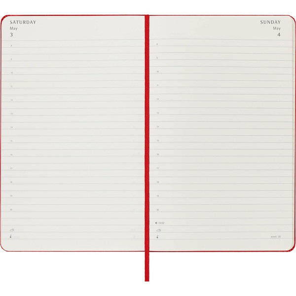 Esta popular agenda, cuyo formato muestra cada día en una página, está disponible en una completa gama de colores para captar los detalles de cada día del año.
