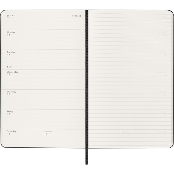 Esta popular agenda, cuyo formato muestra cada día en una página, está disponible en una completa gama de colores para captar los detalles de cada día del año.