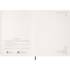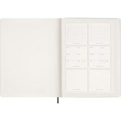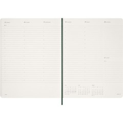 Tu compañera semanal definitiva: la Agenda Essential XXL facilita la organización y la planificación. Con el inconfundible diseño de Moleskine, esta agenda elegante y estilizada tiene una cubierta flexible, pero duradera. En el interior, cada semana se muestra a lo largo de dos páginas. Los días de la semana se muestran verticalmente con franjas horarias para tus citas de 7.00 a 20.00 horas, excepto los sábados y domingos, que no tienen hora. Cada semana también incluye un pequeño calendario de 3 meses para que puedas planificar con perspectiva. Esta agenda está diseñada para satisfacer las necesidades de todos, desde educadores y estudiantes hasta profesionales y familias. Abarca 13 meses, desde enero de 2026 hasta finales de enero de 2027, para mayor flexibilidad. Hemos añadido un montón de pegatinas y una selección de notas adhesivas en el bolsillo trasero para destacar las citas y personalizar tus planes. Una discreta cinta marcapáginas marca tu lugar, mientras que el cierre elástico garantiza la privacidad y mantiene cualquier nota suelta a buen recaudo en el interior. Como todas nuestras agendas, la Agenda Essential se abre con una página de datos personales y una vista general del año en curso y del siguiente para no perder de vista el panorama general. También hay páginas en blanco al final para notas y pensamientos al azar.