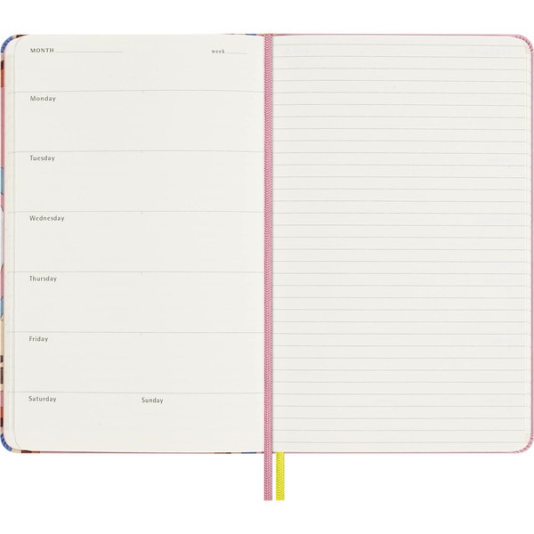 • esquinas redondeadas, cierre elástico y cinta marcapáginas a juego