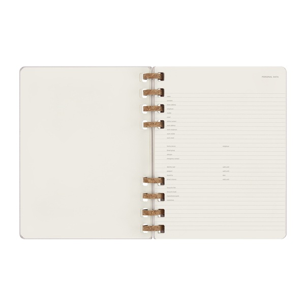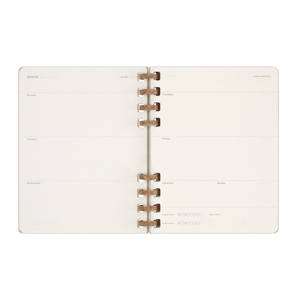 La receta especial de esta encuadernación de mezcla de corcho aporta una sensación resistente, flexible, cálida y original a la agenda sin fecha.