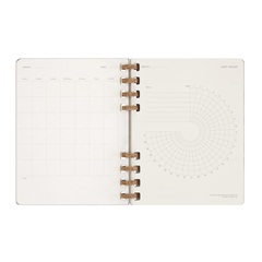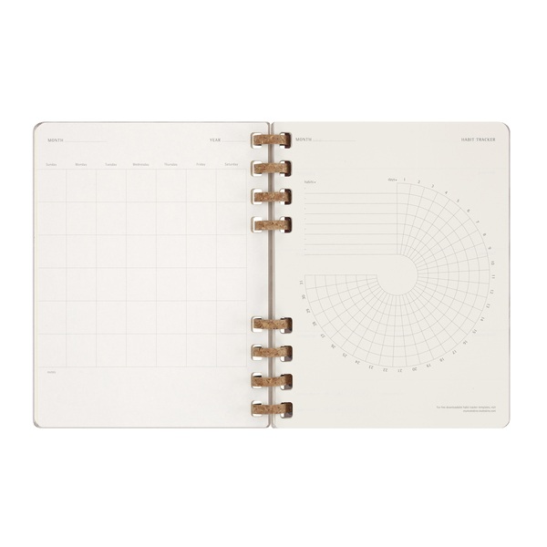 Para ayudarte a estar encima de todo, hemos incluido una sección para trazar y controlar los objetivos mensuales, listas de tareas perforadas y páginas para notas e ideas aleatorias. Cada mes viene con un rastreador de hábitos personalizable para centrarte en el bienestar, mientras que cada semana incluye un recordatorio de creatividad.