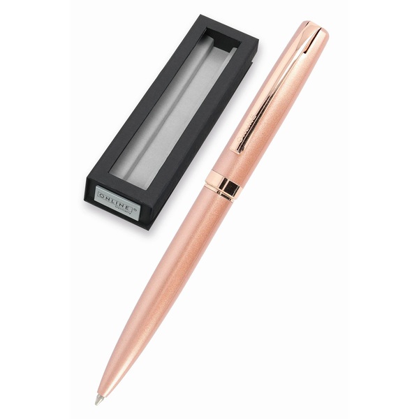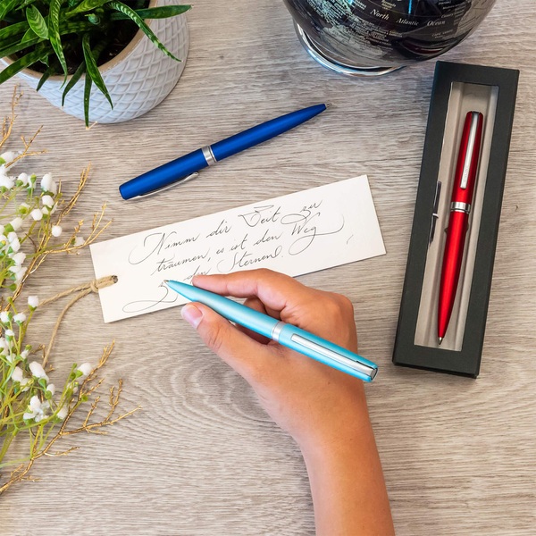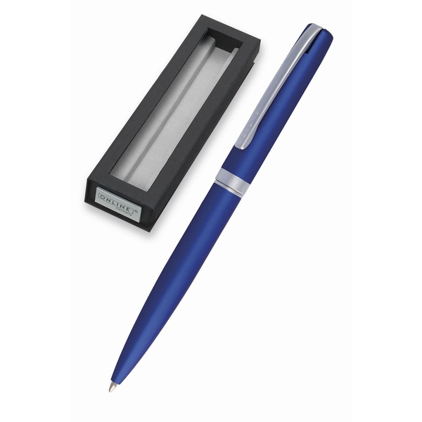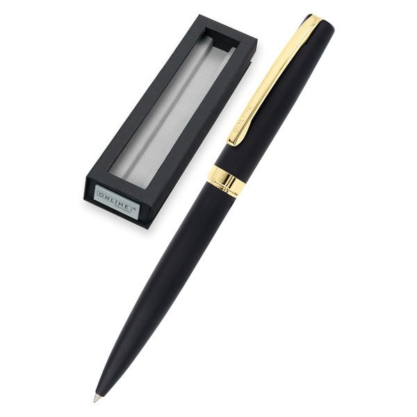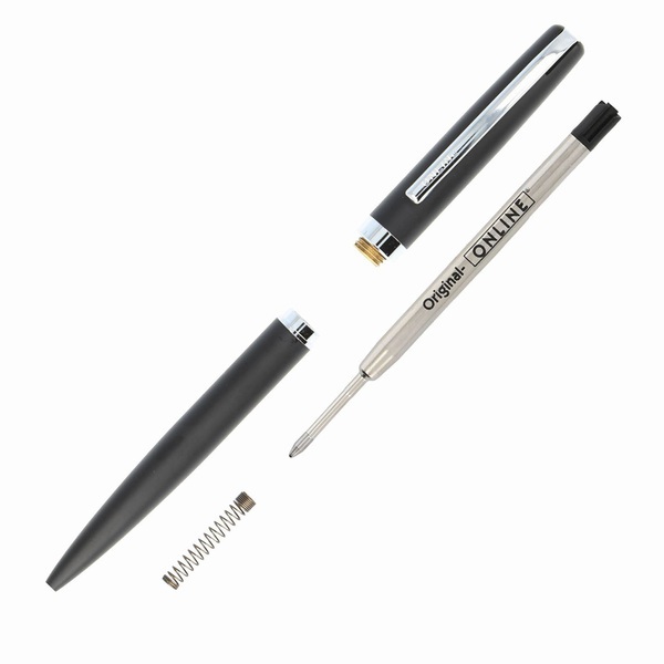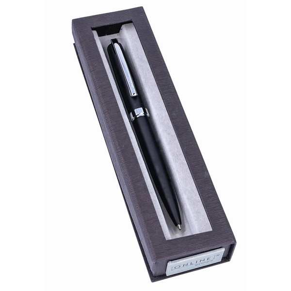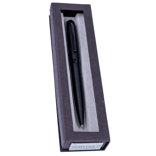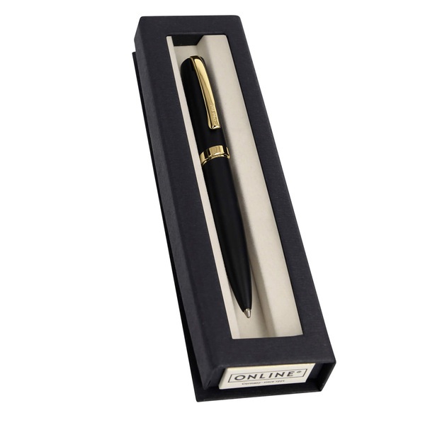 El bolígrafo metálico de diseño de ONLINE, con una gran carga en negro, ofrece la máxima comodidad al escribir. En un bonito estuche de regalo, cada uno de estos instrumentos de escritura es una elegante idea de regalo.