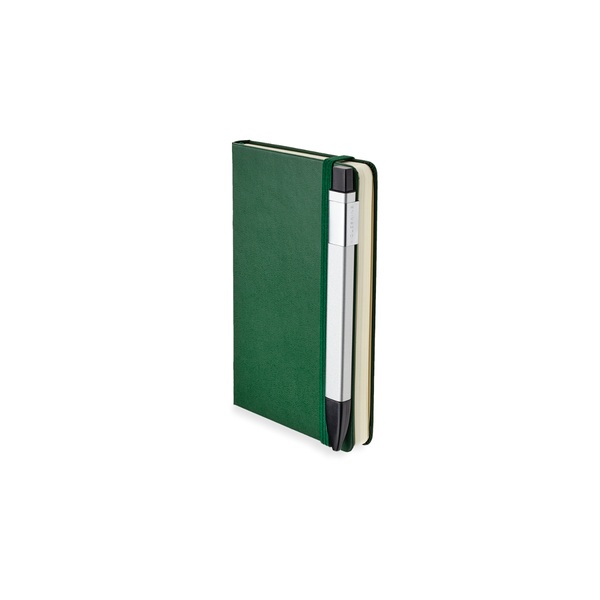 El bolígrafo de clic Classic PRO en elegante gris pizarra se sujeta a cualquier cuaderno de tapa dura Moleskine, para que siempre tengas un bolígrafo al alcance y las manos libres mientras te mueves entre reuniones y citas.