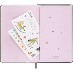 El cuaderno incluye dos hojas de pegatinas para personalizar tus notas, algunas de ellas con cautivadoras citas e ilustraciones del libro. Las páginas están hechas de papel de color marfil de 100 g/m²: el perfecto lienzo en blanco para explorar tu propia imaginación a través de la palabra escrita. Un elástico negro asegura tus notas, mientras que una cinta marcapáginas marca tu lugar, y un bolsillo trasero extensible es perfecto para guardar la inspiración recopilada sobre la marcha. Este festivo cuaderno viene en una caja de regalo negra reutilizable con las mismas imágenes y citas que la tapa del cuaderno.