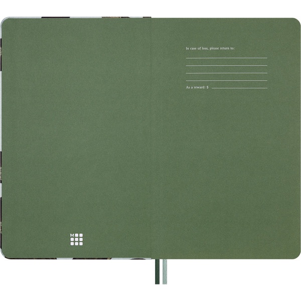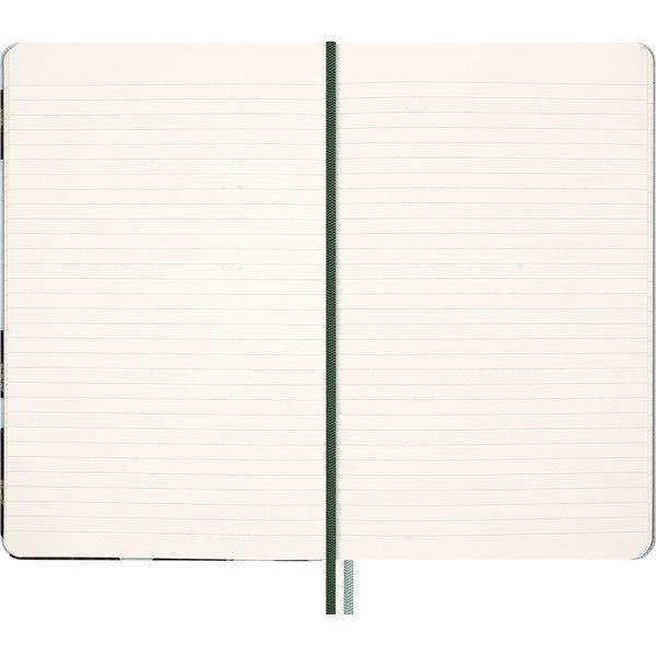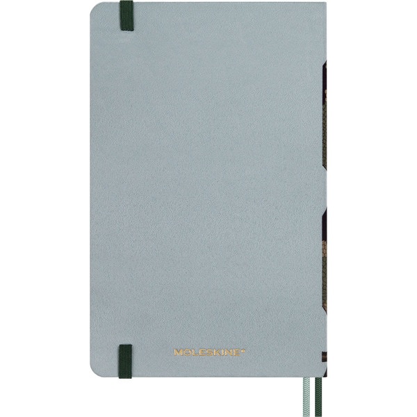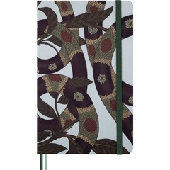 Cuaderno tapa dura forrada con tela con una escena que captura la esencia de la serpiente como símbolo de misterio. Con un telón de fondo de un verde envolvente se encuentra la serpiente elegantemente enrollada alrededor de unas ramas parcialmente ocultas por el follaje. Contiene 2 sobres de la suerte, pegatinas temáticas, 176 páginas y doble cinta marcadora.