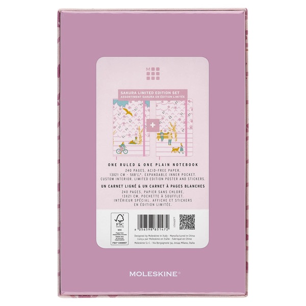 JUEGO DE 2 CUADERNOS DE EDICIÓN LIMITADA SAKURA, GRANDES, A RAYAS Y LISO
