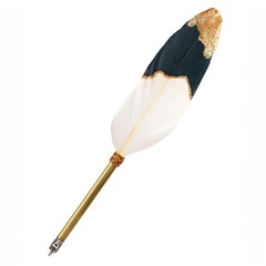 La refinada pluma de ganso ofrece un placer de escritura puro y nostálgico. La elegante punta, de 1,5 mm de grosor, se puede sumergir fácilmente en un tintero para absorber la tinta. Gracias al almacenamiento de tinta, la dispensa uniformemente sobre el papel. La suave pluma de ganso está refinada con brillantes aplicaciones doradas. El mango está hecho de plástico con un acabado dorado brillante y permite escribir con ligereza como una pluma.