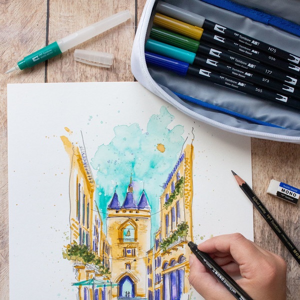 • Incluye un estuche de tela transportable y con compartimentos perfecto para cualquier persona a la que le guste dibujar al aire libre o que quiera iniciarse en esta práctica.