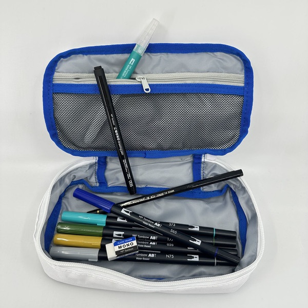 • 1x Estuche de tela para lápices MONO con asa y compartimentos.