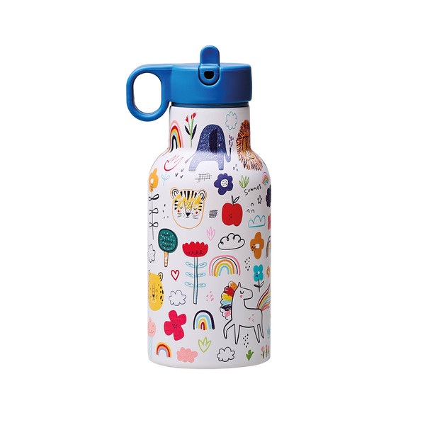La botella infantil Bioloco Sky Kids mantiene las bebidas calientes hasta 12 horas y frías hasta 24 horas gracias a su doble pared de acero inoxidable 304 de alta calidad. Dos tipos de cierre: metálico con asa de transporte y una tapa con pajita. Incluye un cepillo de limpieza. Perfecto para manos pequeñas. Libre de BPA, toxinas y ftalatos. Apta para bebidas con gas. No es apta para el lavavajillas, se recomienda lavar a mano. No apta para el microondas.