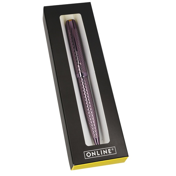 Nuestra Bolígrafo Eleganza Diamond combina un diseño sencillo y un alto confort. El bolígrafo en colores intensos es elegante y llamativo al mismo tiempo. Su superficie ranurada garantiza que se ajuste cómodamente a la mano. Esto significa que puedes escribir durante períodos de tiempo más largos sin ningún esfuerzo. El material de aluminio ligero lo hace estable y, al mismo tiempo, agradablemente ligero. Equipada con una recarga ONLINE de gran capacidad, Eleganza Diamond escribe con especial suavidad y dura mucho tiempo. Cada trazo se desliza suavemente sobre el papel, ideal para notas, cartas o documentos importantes. Gracias a su alta calidad disfrutarás de este bolígrafo durante mucho tiempo. Otro punto a destacar: Eleganza Diamond se entrega en una elegante caja de regalo. Por lo tanto, no sólo es adecuado para su propio uso, sino también como un elegante regalo para amigos o familiares. La funda protege el bolígrafo y le da un aspecto de gran calidad. Con Eleganza Diamond podrás experimentar una escritura elegante de una forma sencilla y agradable. Un bolígrafo que combina a la perfección elegancia y idoneidad para el día a día.