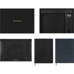 Esta caja incluye un cuaderno de tapa vegana en azul oscuro y un cuaderno con efecto pitón en negro. Ambos tienen papel de alta calidad de 100 g/m², junto con todos los elementos que cabe esperar de Moleskine: esquinas suavemente redondeadas, un bolsillo expansible para guardar notas sueltas, un cierre elástico para asegurar tus ideas y una cinta marcapáginas. Añade un toque personal personalizando la nota "En caso de pérdida" del interior de la portada y, a continuación, llena las páginas con notas, pensamientos, tareas, recordatorios, proyectos y planes. Mantén la naturalidad explorando las ideas de la forma más instintiva posible: a mano sobre el papel.