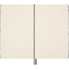 • - cuaderno grande, a rayas en papel plateado de tapa dura inspirado en los materiales técnicos utilizados en el espacio