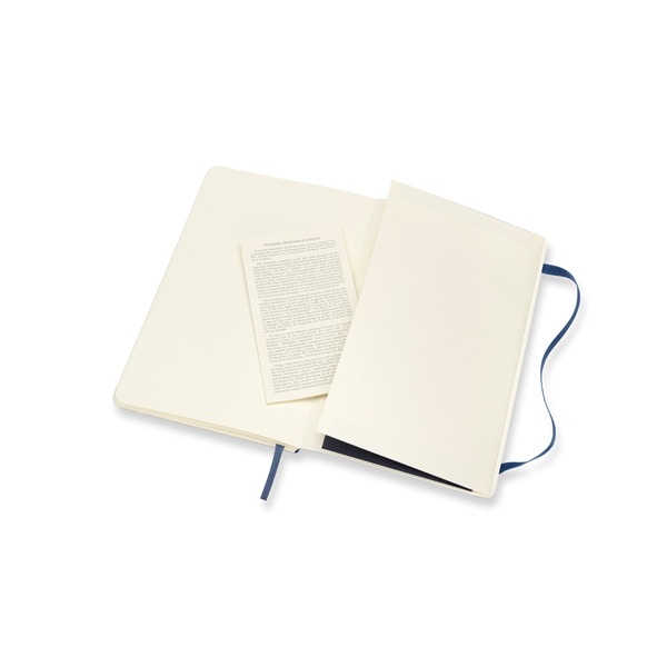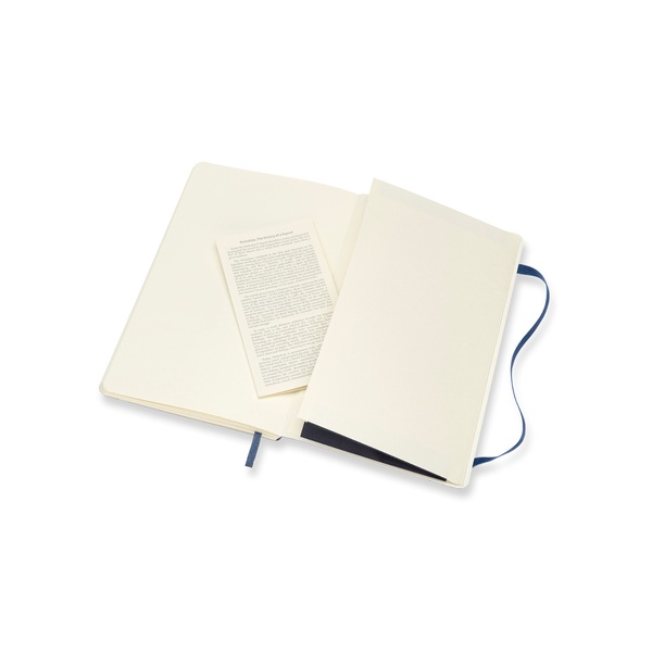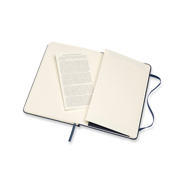 Lo suficientemente pequeño como para caber en cualquier bolso, lo suficientemente grande como para caber la mayor de ideas. El clásico cuaderno de Moleskine incluye esquinas redondeadas para proteger de los golpes en el camino y un cierre elástico para preservar tus pensamientos manuscritos y tus contenidos creativos. Una cinta marcapáginas coordinada por color te ayuda a realizar un seguimiento de tus proyectos, mientras que un bolsillo interior extensible es perfecto para almacenar notas sueltas recopiladas a lo largo del día. El mensaje «en caso de pérdida» distintivo de Moleskine te invita a añadir tu nombre, datos de contacto y una recompensa, por si pierdes tus notas indispensables en tus desplazamientos.