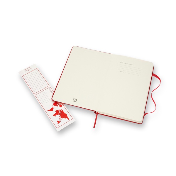 Lo suficientemente pequeño como para caber en cualquier bolso, lo suficientemente grande como para caber la mayor de ideas. El clásico cuaderno de Moleskine incluye esquinas redondeadas para proteger de los golpes en el camino y un cierre elástico para preservar tus pensamientos manuscritos y tus contenidos creativos. Una cinta marcapáginas coordinada por color te ayuda a realizar un seguimiento de tus proyectos, mientras que un bolsillo interior extensible es perfecto para almacenar notas sueltas recopiladas a lo largo del día. El mensaje «en caso de pérdida» distintivo de Moleskine te invita a añadir tu nombre, datos de contacto y una recompensa, por si pierdes tus notas indispensables en tus desplazamientos.