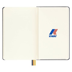 Hecho para los exploradores de ideas, este cuaderno cubierto de tela personifica el estilo fresco y discreto de K-Way. La calidad y la funcionalidad se encuentran con el diseño en esta edición personalizada. Asegura tus notas con un cierre elástico a rayas que recuerda la cremallera de la marca y lleva un seguimiento de las distintas ideas con tres cintas de marcapáginas con los mismos colores de K-Way. Las páginas iniciales y finales de este cuaderno están personalizadas con el logotipo de K-Way. Este es un cuaderno para llevar contigo dondequiera que te lleve el día. Elige el cuaderno K-Way perfecto para cada aventura.