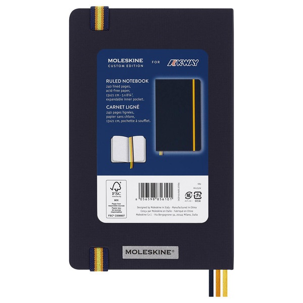 CUADERNO MOLESKINE POR K-WAY RAYADO BLUE