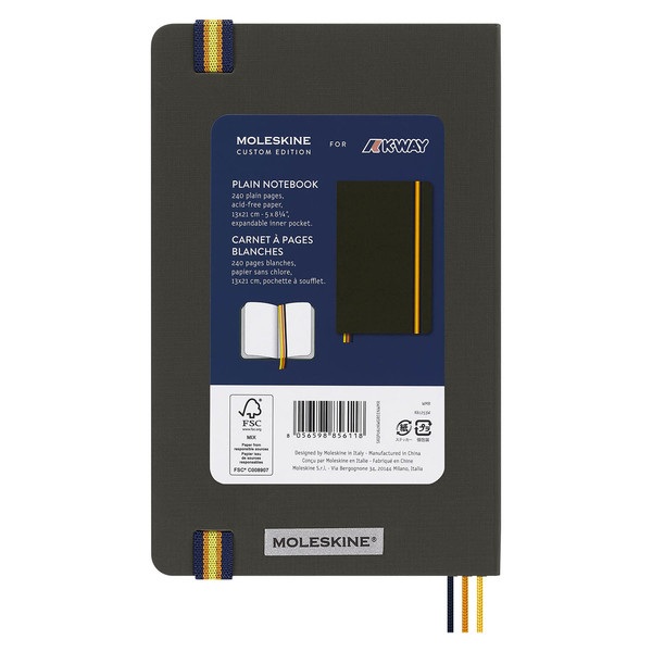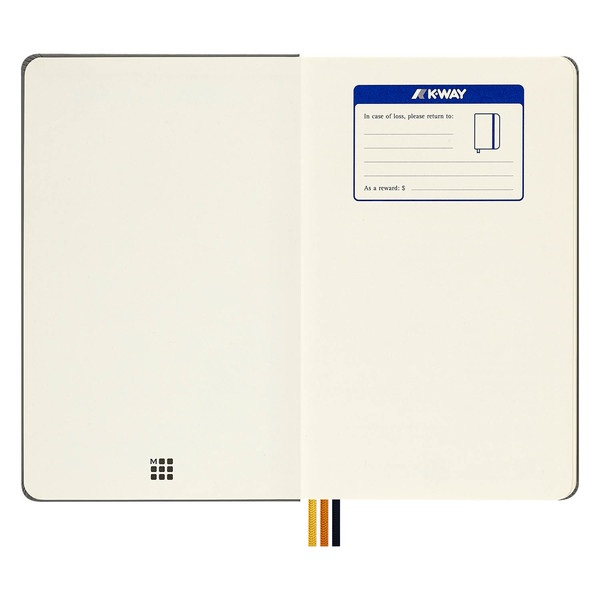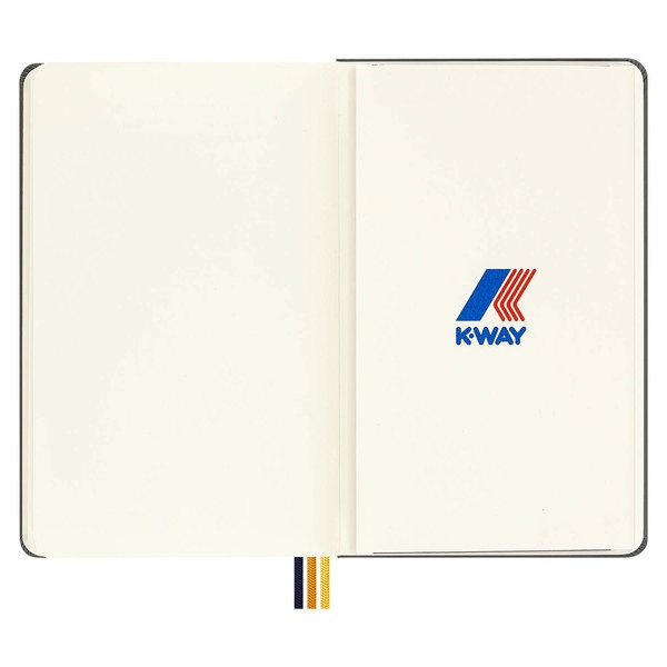 Hecho para los exploradores de ideas, este cuaderno cubierto de tela personifica el estilo fresco y discreto de K-Way. La calidad y la funcionalidad se encuentran con el diseño en esta edición personalizada. Asegura tus notas con un cierre elástico a rayas que recuerda la cremallera de la marca y lleva un seguimiento de las distintas ideas con tres cintas de marcapáginas con los mismos colores de K-Way. Las páginas iniciales y finales de este cuaderno están personalizadas con el logotipo de K-Way. Este es un cuaderno para llevar contigo dondequiera que te lleve el día. Elige el cuaderno K-Way perfecto para cada aventura.