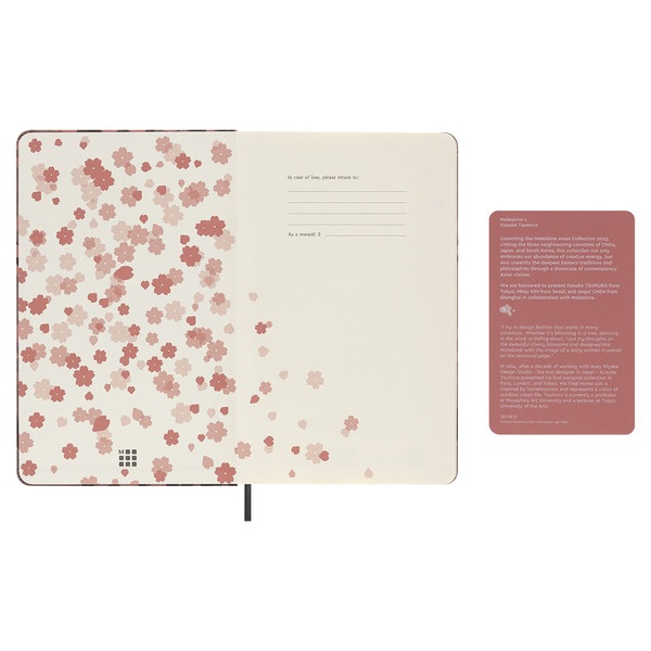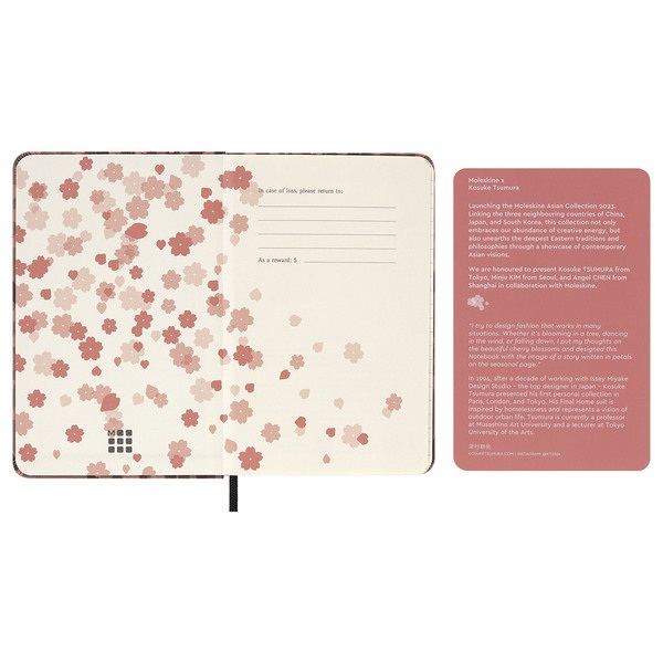 Este cuaderno Sakura forma parte de la Colección Asiática 2023 de Moleskine. La colección es una muestra del talento asiático contemporáneo que reúne a los países vecinos de China, Japón y Corea. Creada para potenciar la energía creativa y celebrar la diversidad de las tradiciones asiáticas, cada singular diseño del cuaderno enriquece la misión de Moleskine de apoyar la creatividad e inspirar las ideas del futuro.