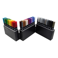 Los colores son libres de ácidos, inodoros y no son resistentes a la luz. Perfecto para hand lettering y caligrafía, acuarela, diarios creativos (bullet journal), ilustraciones, dibujo de cómics, manga, urban sketching, stamping, bocetos, ... ¡y mucho más! Presentación en Maletín con 108 rotuladores doble punta pincel (1 x color + blender).