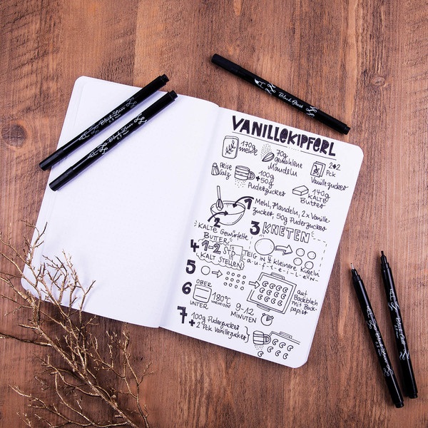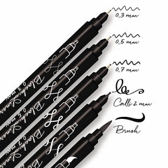 5 puntas ideales para el hand lettering 0,3 - 0,5 - 0,7 mm. - Punta de caligrafía 2 mm. - Punta de pincel Perfecta para escribir a hand lettering, dibujos y bocetos y caligrafía Tinta india de color negro intenso Resistente al agua y a los documentos Resistente a la luz
