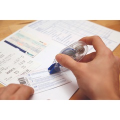 Rollo de cinta adhesiva manejable con diseño ergonómico. El innovador cilindro de desenrollado permite una aplicación sencilla y uniforme. Para pegar papel, cartulina, fotos y más, de forma limpia, resistente y permanente. Cinta PET resistente al desgarro, 6 mm x 10 m, aplicable hasta el último milímetro. Proporción de material reciclado en el peso total: 80%