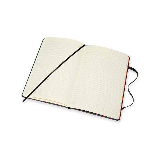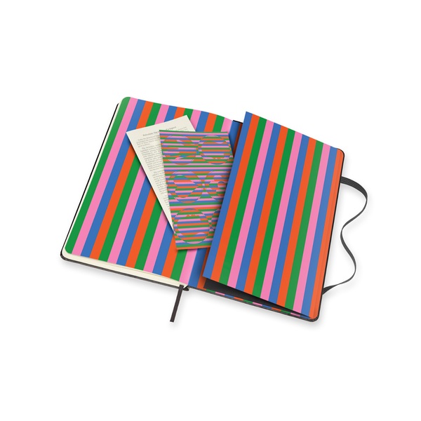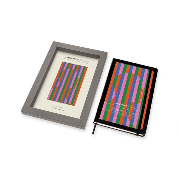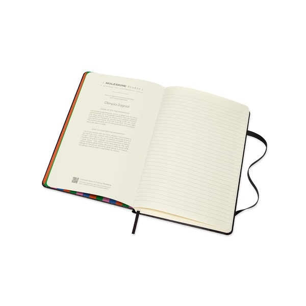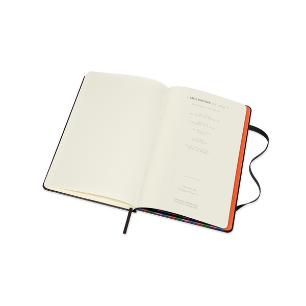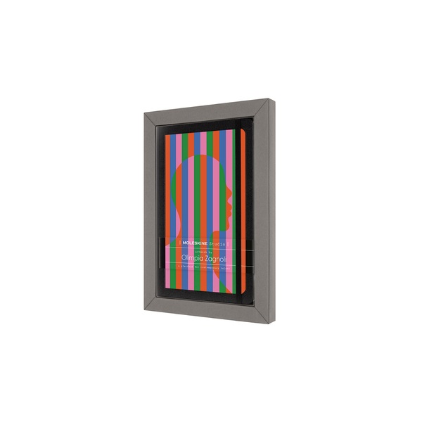 Las libretas de Moleskine Studio enmarcan el trabajo de artistas internacionales diferentes, con la opción de elegir páginas lisas o a rayas para cada una de ellos. La obra de arte original no solo aparece en la tapa, sino también en las guardas y en el juego de pegatinas del interior. Las páginas están hechas con papel de 100 g/m² idóneo para una amplia selección de instrumentos de escritura y dibujo.