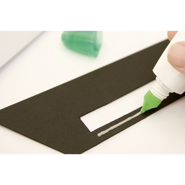 Pegamento líquido blanco con dos puntas. Punta fina para pegado puntual, punta ancha para aplicación en superficies mayores. Pega papel, cartón, fotos, fieltro y mucho más, de forma resistente y limpia. Para pegados permanentes y removibles. Sin ácidos, apto para fotografías. Para uso reposicionable, aplicar una capa fina y dejar que se seque completamente (2-3 min.). Después reposicionar si es necesario. para uso permanente, aplicar una fina capa y presionar mientras todavía está húmedo. Contenido 25 ml.