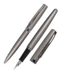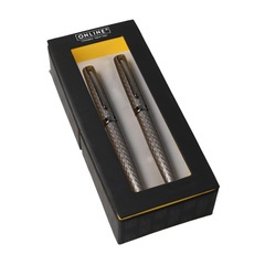 Set compuesto por bolígrafo metálico de diseño de ONLINE y pluma estilográfica equipada con un elegante plumín M (mediano). En un bonito estuche de regalo, cada uno de estos instrumentos de escritura es una elegante idea de regalo.