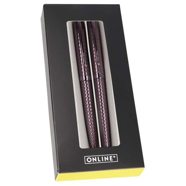 Set con bolígrafo y pluma estilográfica Eleganza Diamond. El bolígrafo con superficie ranurada garantiza que se ajuste cómodamente a la mano. Esto significa que puedes escribir durante períodos de tiempo más largos sin ningún esfuerzo. El material de aluminio ligero lo hace estable y, al mismo tiempo, agradablemente ligero. La pluma equipada con una punta de iridio de alta calidad, ancho de trazo "M" (medio), para una escritura normal y característica. La pluma estilográfica ofrece una experiencia de escritura agradable con un flujo de tinta uniforme.