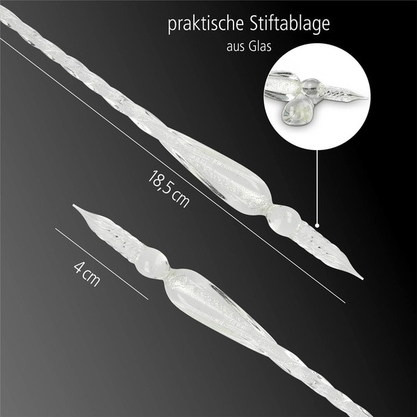 Juego de pluma de inmersión de vidrio ONLINE, incluye tintero negro: placer de escritura noble con elegancia cristalina Sumérgete en el mundo de la escritura con estilo con el set de pluma de inmersión de vidrio. Esta pluma de vidrio, hábilmente retorcida, combina la artesanía tradicional con un diseño moderno. Gracias a su punta finamente elaborada, se desliza suavemente sobre el papel, sin rayarlo. La punta larga y espiral garantiza un flujo de tinta uniforme y duradero.