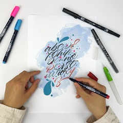 • 1x ABT Dual Brush con punta de pincel de nylon flexible ancha para aplicar colores planos. La anchura del trazo varía en función de la presión aplicada. La punta fina de poliéster se desliza suavemente sobre el papel, ideal para trazos exactos. Punta ancha para aplicar colores planos. Color negro (N15).
