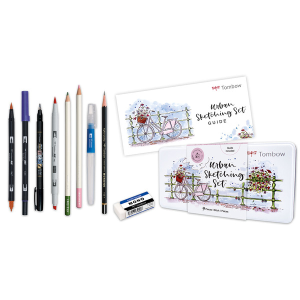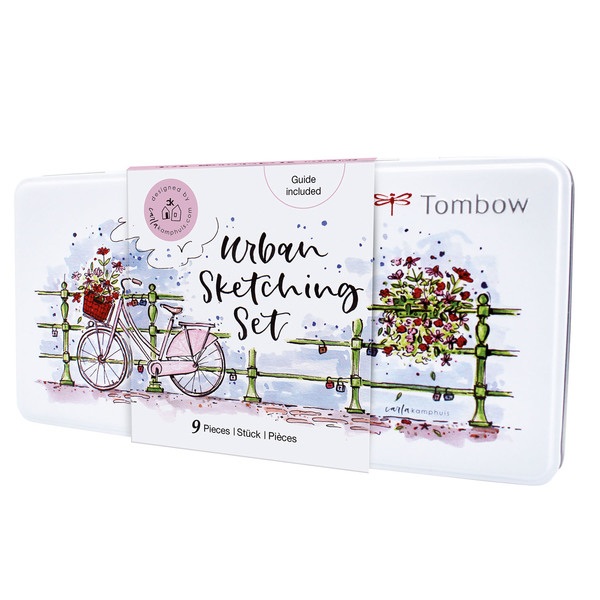 Con la técnica del Urban Sketching dibujas lo que ves en el acto o fotografias el motivo para terminarlo en casa con tranquilidad. El Tombow Urban Sketching Set contiene una selección de productos Tombow a juego que se pueden combinar perfectamente entre sí, una guía paso a paso y una caja de metal de alta calidad con un llamativo diseño.